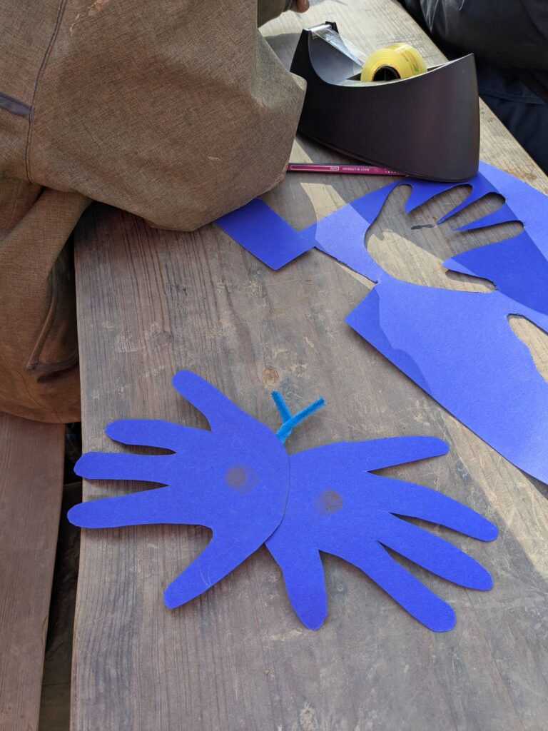 Zunächst besprachen wir die Merkmale des blau- schwarzen Käfers, den Lebensraum und wir erklärten den Kindern, warum er Kotkugeln vor sich her schiebt. Wusstet ihr schon dass das Mistkäferweibchen eine Höhle mit zahlreichen Gängen in der Nähe von Ausscheidungen gräbt, in welche der Kot gedrückt wird und dass dort die Larven hineingelegt werden? Oder dass der Mistkäfer mit seinen Fühlern bis zu 2 km weit riechen kann? Mehr spannende Infos können unsere Waldkids weitergeben, also einfach mal unsere kleinen Experten fragen.